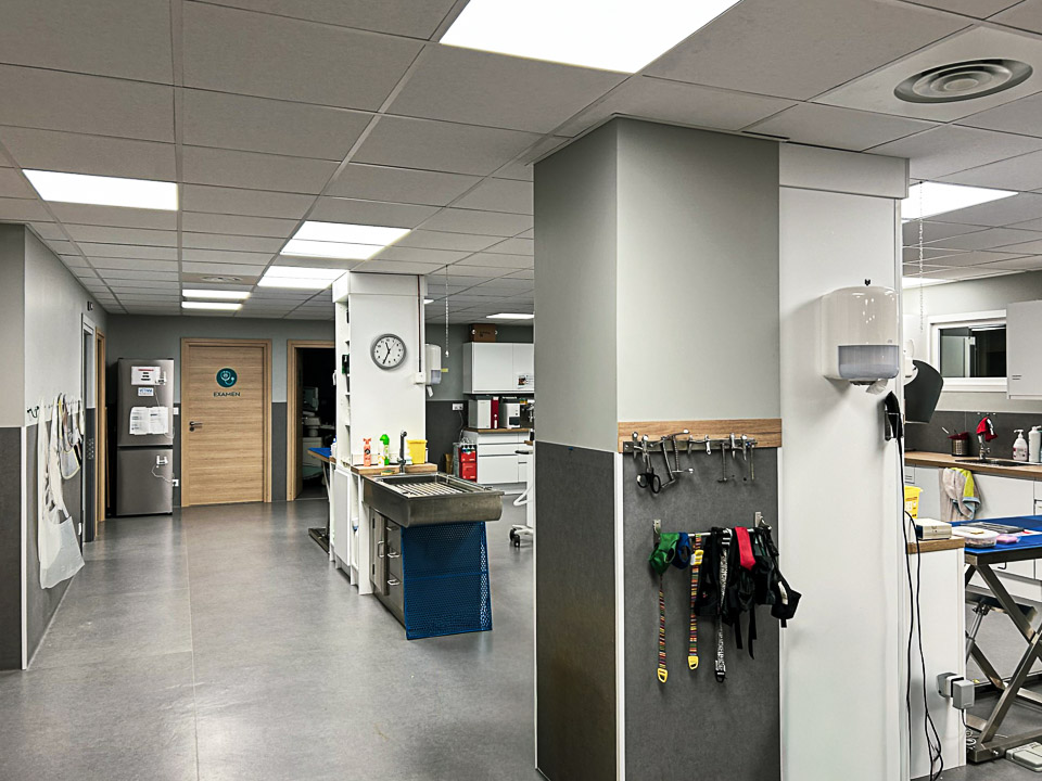 • Production d’oxygène centralisée, avec plusieurs points d’accès répartis dans l’ensemble de la clinique pour répondre aux besoins des animaux hospitalisés.