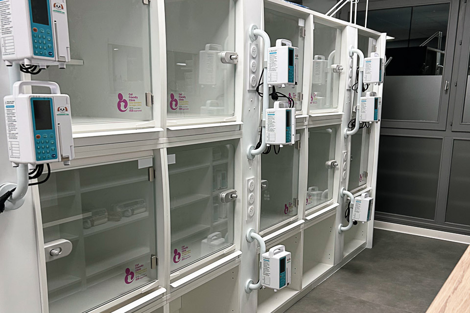 Production d’oxygène centralisée, avec plusieurs points d’accès répartis dans toute la clinique pour répondre aux besoins des animaux hospitalisés.